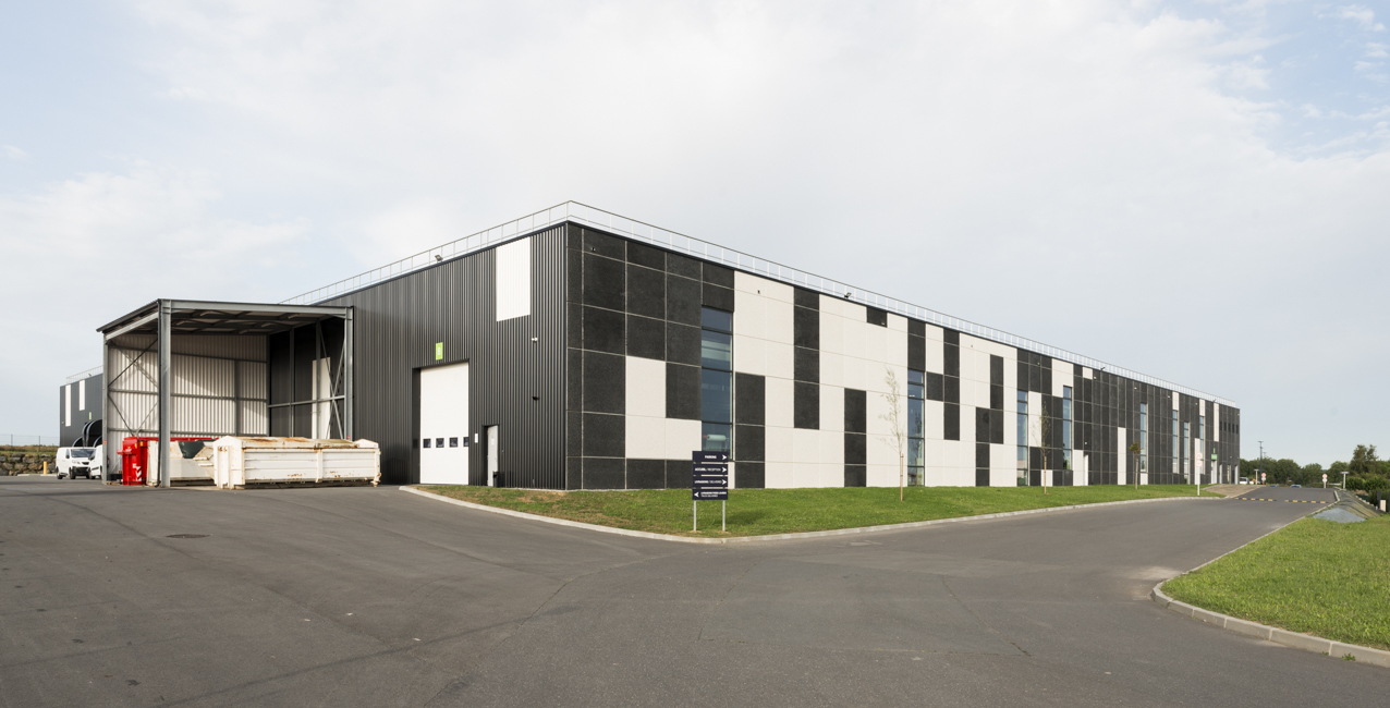 À l’image de la qualité et de la technicité de la société qu’il héberge, le projet est réalisé en béton préfabriqué complétée à l’est par une façade réalisée en bardage métallique permettant une adaptation aisée des conditions d’exploitation de l’entrepôt pour les années futures.